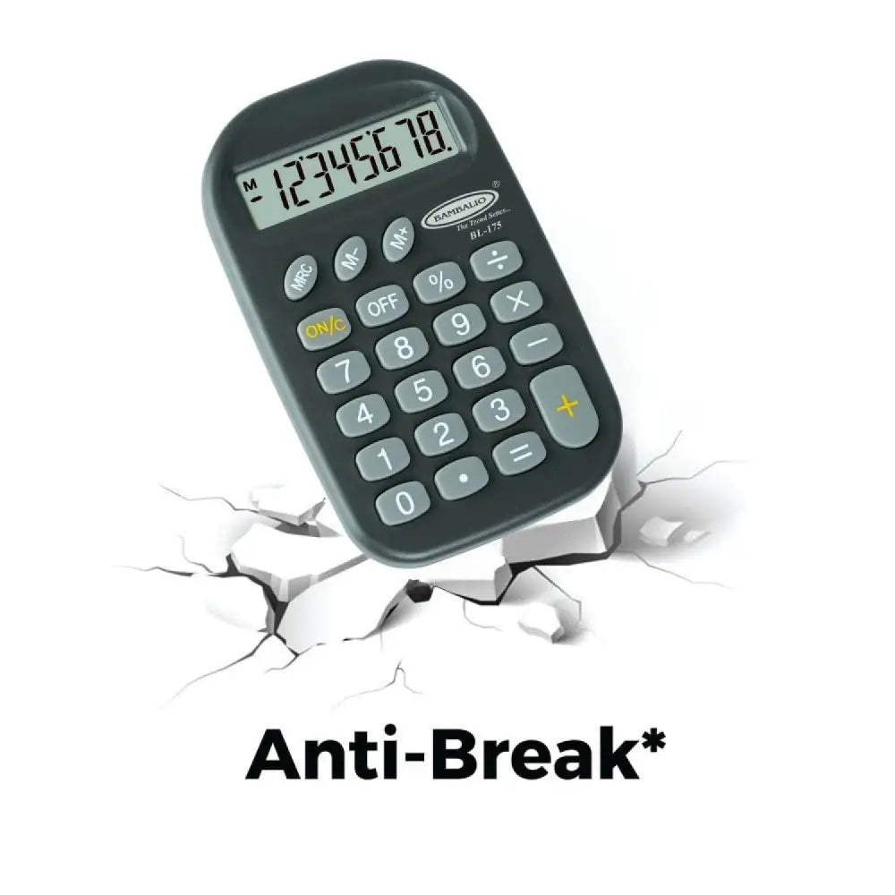 The Bambalio BL-175 is a dependable pocket calculator engineered for professionals and everyday users. Its compact design slips effortlessly into briefcases or desk drawers, while the 8-digit display delivers clear, legible results for all your calculations. Featuring soft-touch keys for comfortable operation and advanced anti-break technology that safeguards against accidental drops, this calculator handles general mathematics, business computations, and personal finance with equal proficiency. Backed by a comprehensive 3-year warranty, it's a reliable tool for home, office, or on-the-go use.