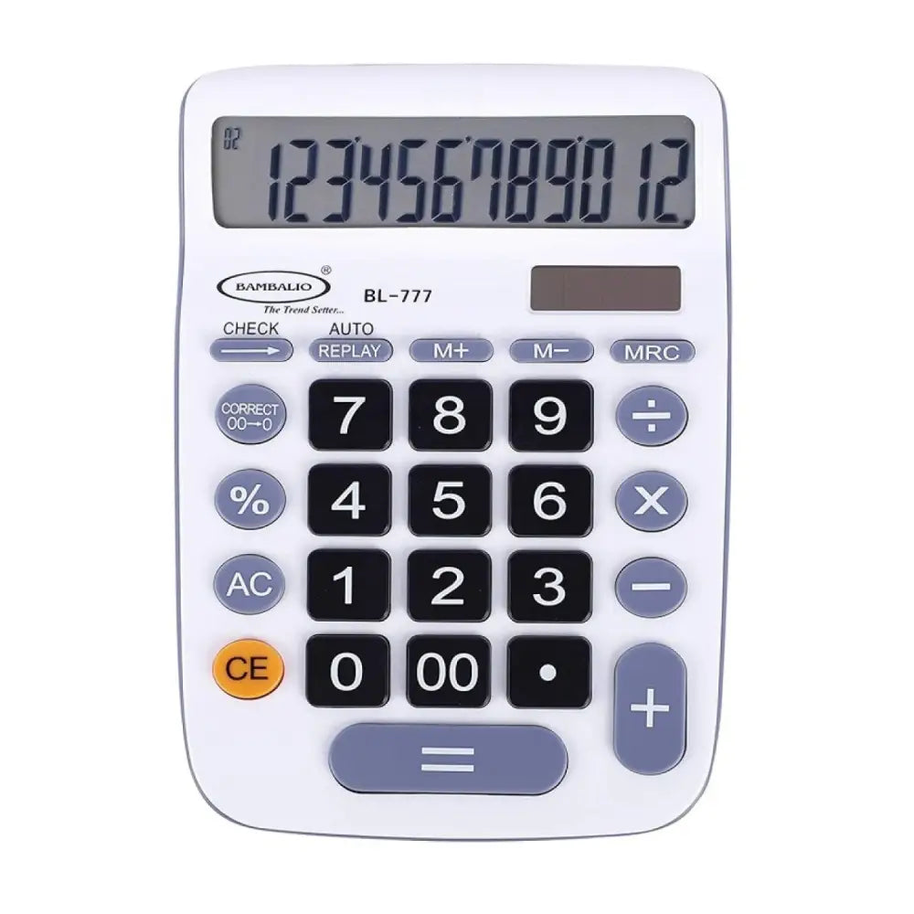 The Bambalio BL-777 12 Digits Desktop Calculator is a reliable and durable calculator designed for efficient and hassle-free usage. With its anti-scratch LCD screen and anti-break technology, this calculator ensures a longer life and protects the body from being dropped. The 12 digits-large LC display, 112 steps check and correct feature, and heavy plastic keys make it a convenient and long-lasting tool for your calculations. Plus, it comes with a dual power source for extended use and a 3-year battery life* under normal conditions.