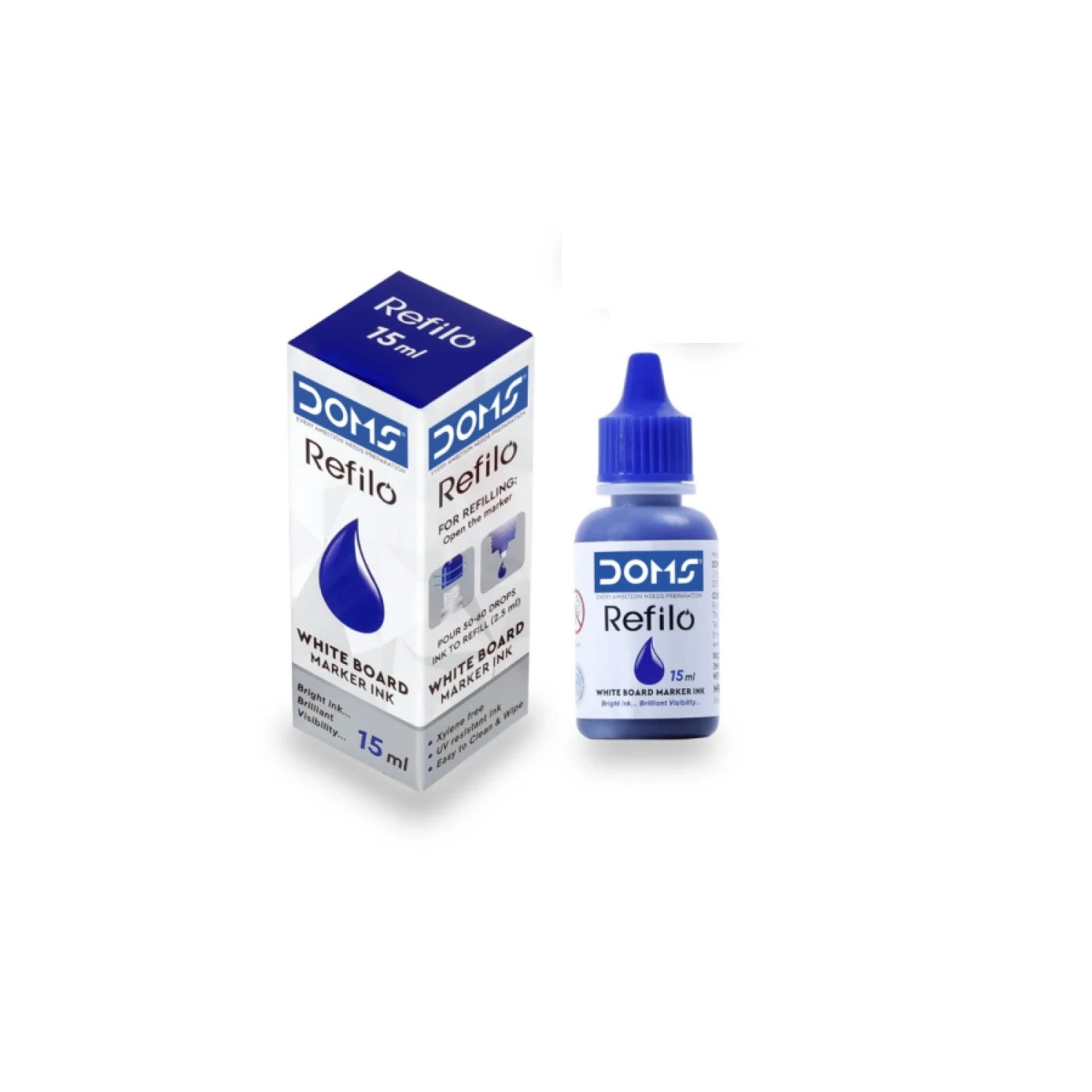 DOMS White Board Marker Ink delivers vibrant, fade-resistant color formulated for versatile writing surfaces. This professional-grade ink performs flawlessly on whiteboards, glass desks, tiles, and flexible materials, making it ideal for classrooms, offices, and creative spaces. The bright pigmentation ensures excellent visibility and legibility, while the smooth flow prevents skipping and streaking. Quick-drying and easily erasable, it maintains consistent performance across multiple applications. Perfect for professionals and educators seeking reliable, multi-surface marking solutions.