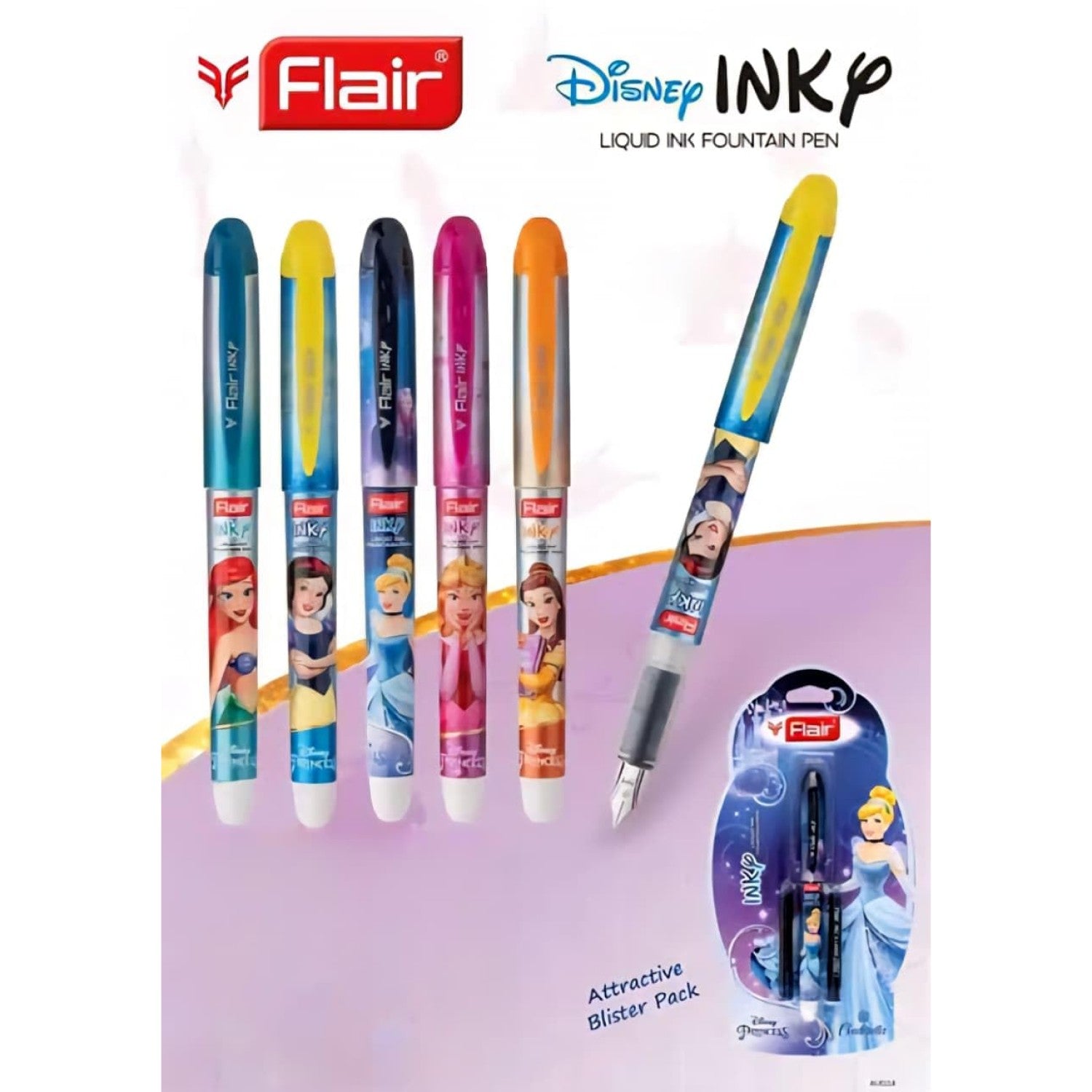 Elevate your writing with the Flair Inky Series Disney Princess Fountain Pen, engineered for those who demand precision and comfort. The stainless steel nib with iridium tip delivers consistent ink flow without skipping, smearing, or stuttering—ideal for students, professionals, and journaling enthusiasts alike. Its ergonomic grip reduces hand fatigue during extended writing sessions, making it perfect for school, college, office work, and creative pursuits. Each pen arrives with two complimentary jumbo ink cartridges containing 35% more ink, ensuring extended writing before refilling. Experience the refined performance of a premium fountain pen designed for everyday reliability.