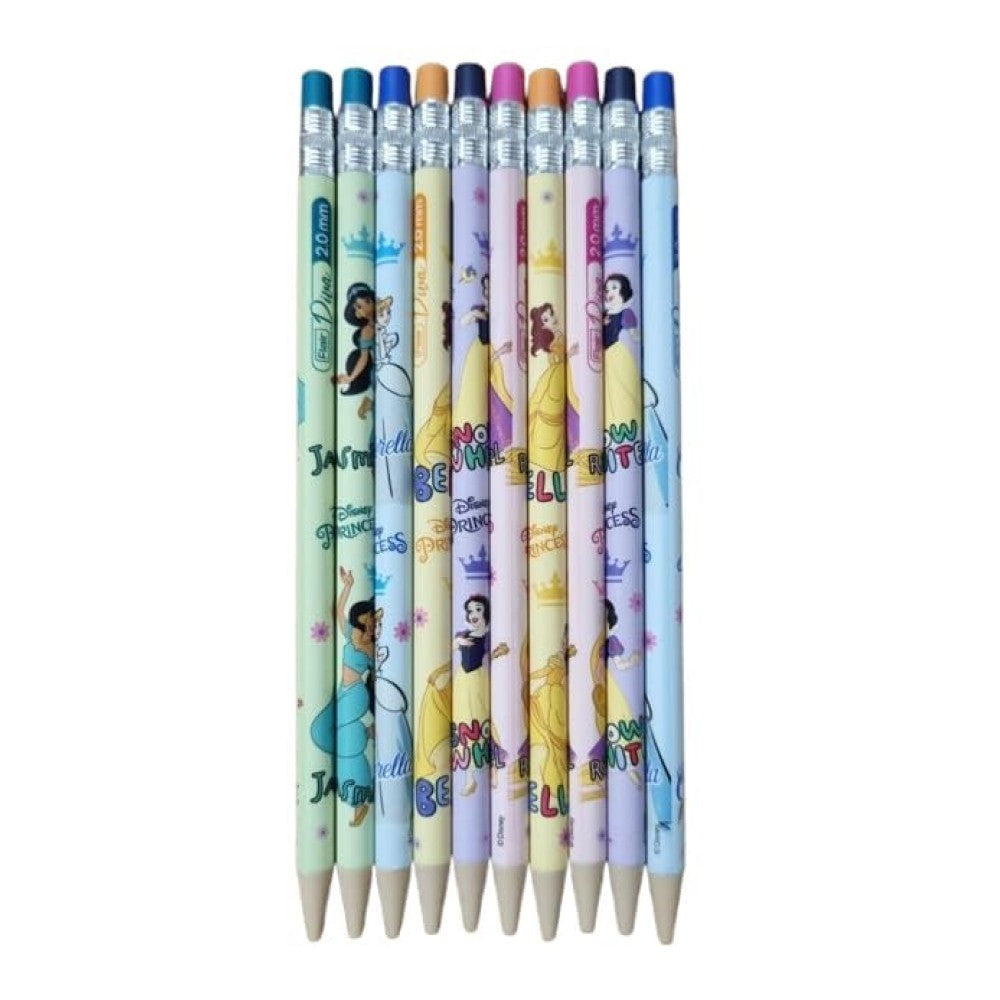 The Flair Diva 2.0mm Mechanical Pencil pack features charming Disney Princess designs including Belle, Jasmine, Rapunzel, and Cinderella, adding a magical touch to writing and drawing. With smooth 2mm lead, it delivers precise and clear lines ideal for neat notes and sketches. The pencils are eco-friendly and refillable, promoting sustainability by reducing waste. Packaged attractively, this set of 10 pencils includes one eraser and one sharpener, making it an ideal gift for birthdays or return gifts that combines practicality with enchanting style.