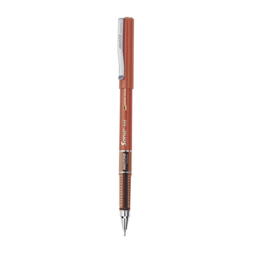 The Hauser Sonic Gel Pen features a unique body design with a solid clip that prevents rolling, ensuring convenience on any surface. Its grip section boasts a finely engraved twill texture, providing a secure hold even for sweaty hands. Equipped with a durable metal clip, this pen easily attaches to notebooks, binders, or pockets, making it ideal for daily writing tasks. With a simple yet trendy foiled body, it suits school, college, and office use perfectly. Whether for writing, journaling, or note-taking, it’s an excellent choice for professionals, students, and gift-giving occasions.