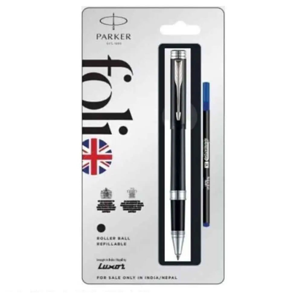Parker Folio Standard Chrome Trim Roller Ball Pen | Ink Colour - Blue