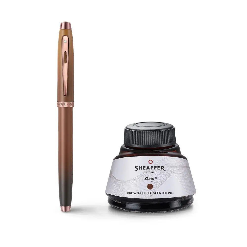 Sheaffer Coffee Edition 100 9374 Fountain Pen Medium Nib with Coffee Scented Ink Bottle