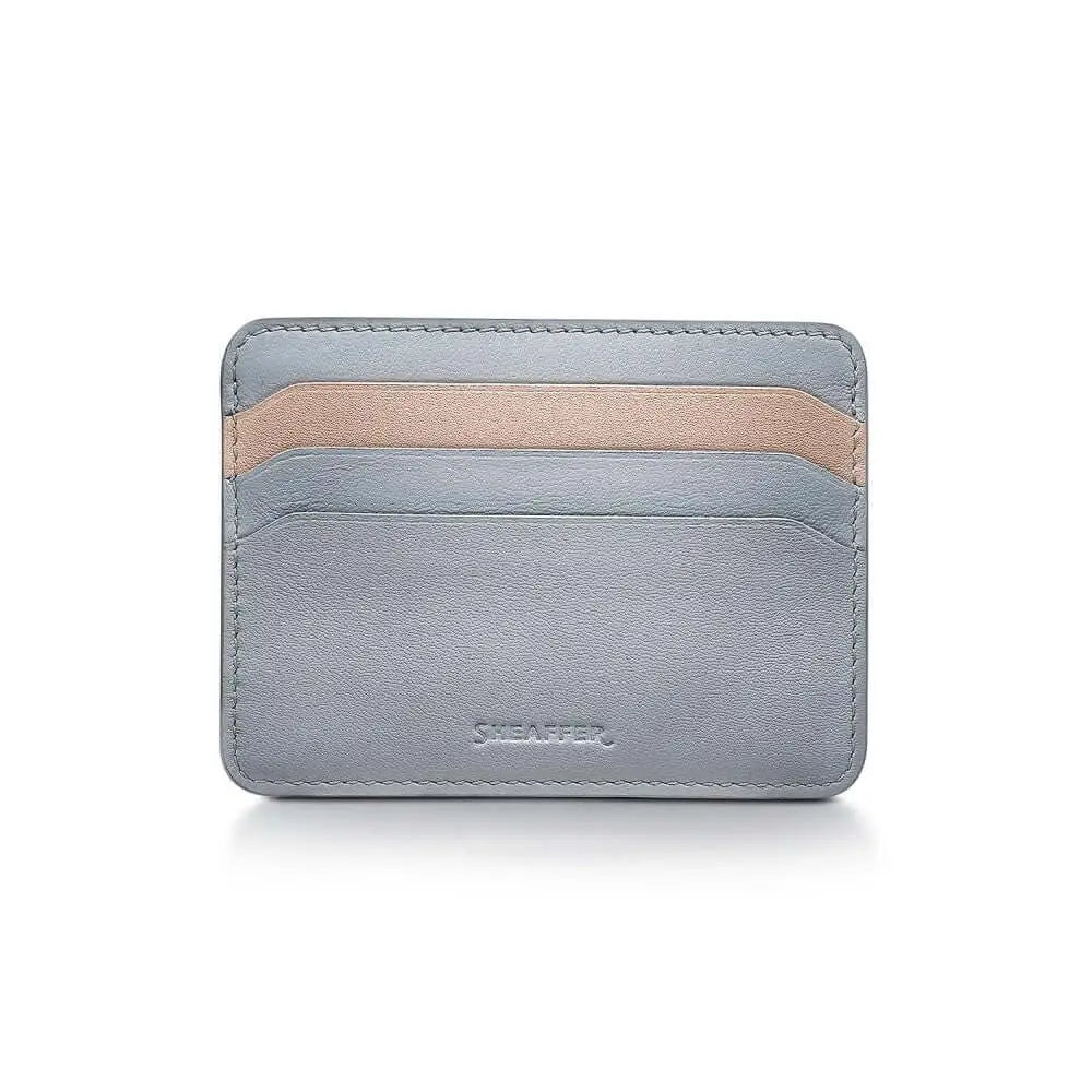 This premium gift set features the Sheaffer Expressions 100 ballpoint pen with a pearlised gradient finish and chrome-plated trims, offering a smooth, reliable writing experience via its convenient twist mechanism. Complemented by a genuine leather credit card holder in a dual-tone pastel design, it provides RFID protection and practical storage for up to four cards plus an additional slip pocket. Presented in a fully recyclable, plastic-free premium paper gift box, this duo combines elegance with functionality for discerning professionals.