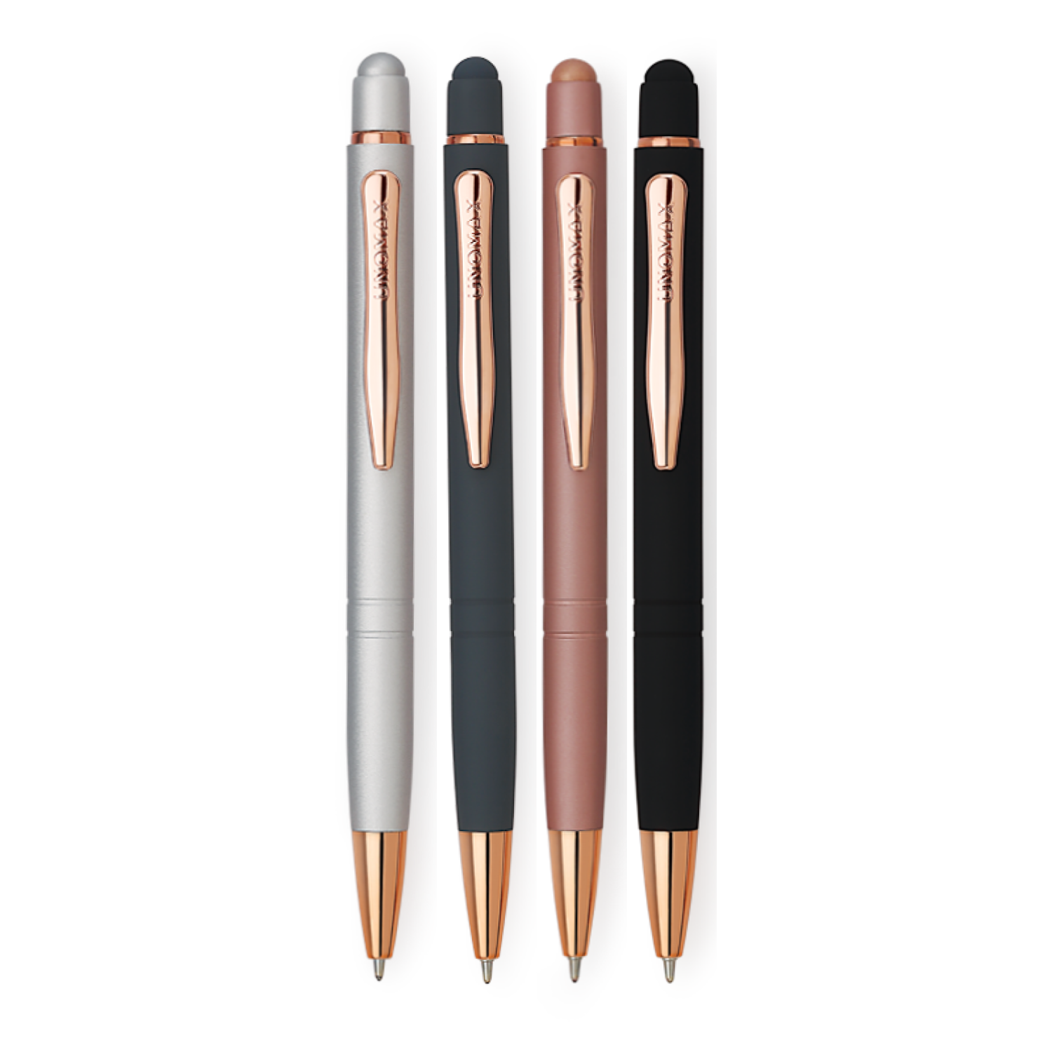 The Unomax Soft Touch Ball Pen combines sophisticated design with practical versatility. Its premium matt finish body paired with a gold-plated clip projects understated elegance, while the robust full metal construction guarantees longevity through daily use. The anodized finish provides exceptional resistance to scratches and discoloration, maintaining its refined appearance over time. This dual-purpose instrument functions seamlessly as both a traditional ballpoint and a capacitive stylus, making it ideal for professionals who navigate between paper and touchscreen devices. Equipped with Jet Ink Technology, it ensures smooth, reliable blue ink delivery with minimal skipping. A sophisticated writing instrument that adapts to your modern lifestyle without compromising on quality or aesthetics.