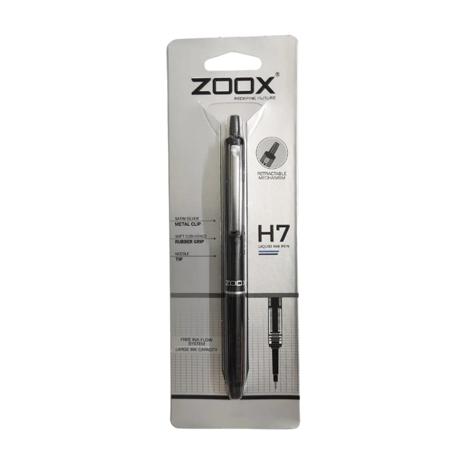 The Zoox H7 Retractable Liquid Ink Pen offers a fluid and comfortable writing experience, featuring an ergonomic grip for precise control. Its smooth ink flow ensures consistent lines without skipping, smearing, or stuttering. Available in blue and black, this pen is ideal for students and professionals alike, making it perfect for writing, journaling, note-taking, and underlining tasks. Reliable and easy to handle, it meets the demands of school, college, and office environments with expert precision.